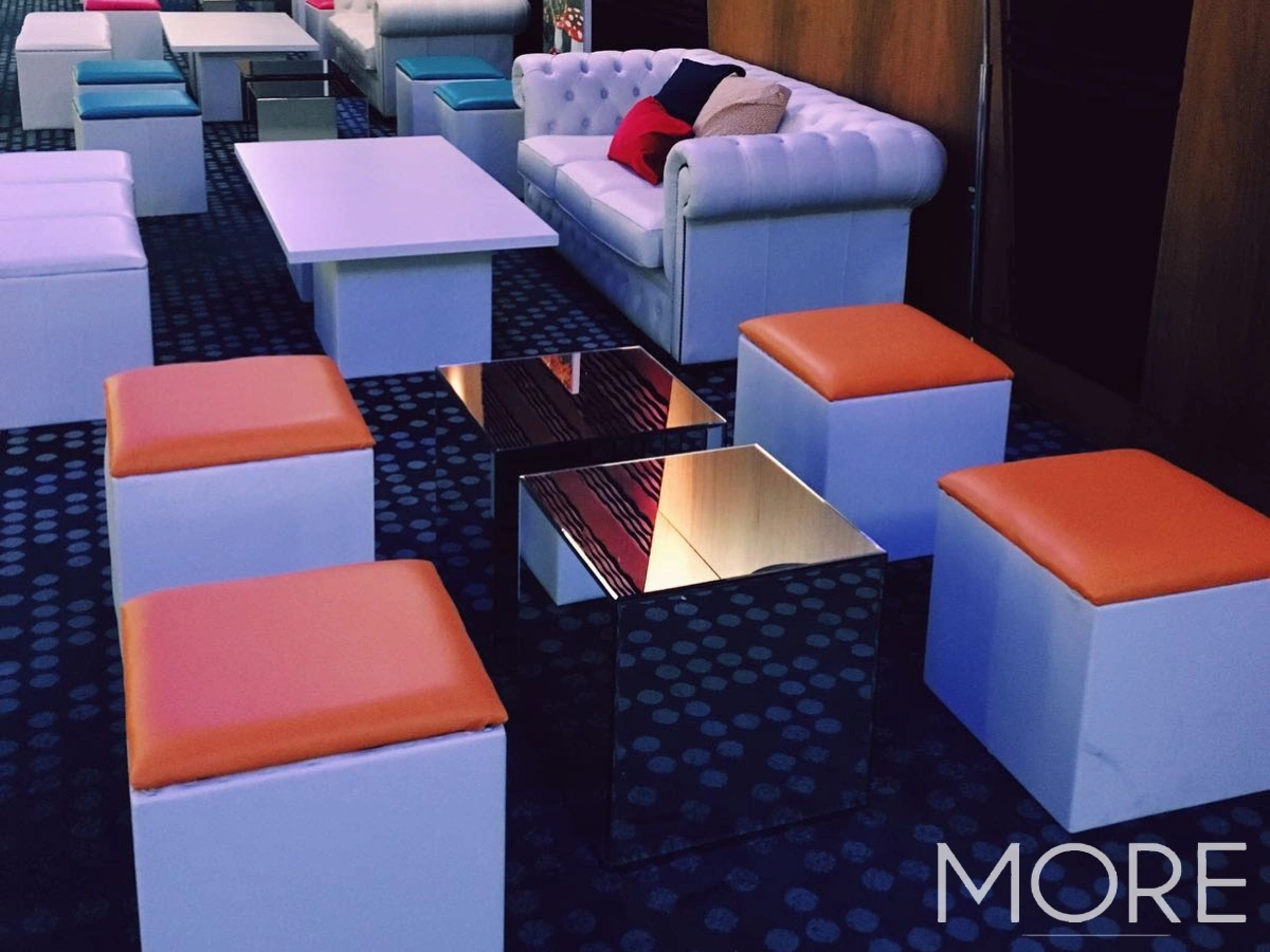 Our sofas, cube seats and benches are designed with brand activations in mind — practical, customisable and built to impress.